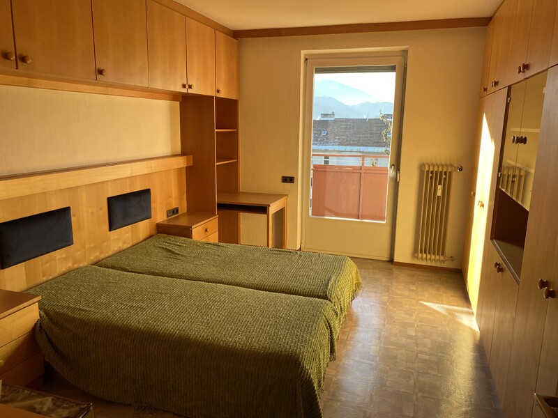 18 qm mit Zugang auf 4,5 qm großem Balkon Richtung Westen, ein eingebauter Vollholzschrank bietet enorm viel Stauraum