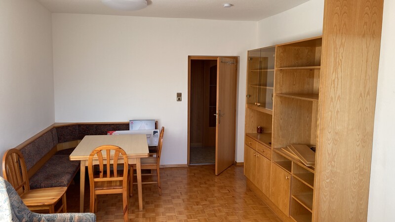 21,4qm mit großem Fenster Parketboden es ist eine eingebaute Eckbank mit ausziehbarem Tisch vorhanden